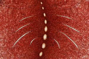 Questo lavoro vuole essere una rivendicazione di potere e un omaggio, un atto di spavalderia non per forza attribuibile alla figura “Donna”, ma più in generale un rovesciamento di principi di vergogna corporea che vengono imposti da secoli alle persone dotate di vulva, qui rappresentata come qualcosa che con l’erotico centra poco, ma che ha tanto a che fare con un mondo più esoterico e misterioso.