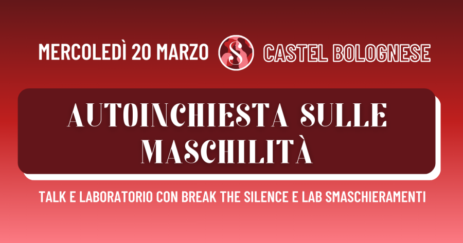 Confronto collettivo in cui si approfondiranno i temi sviluppati durante il Dibattito collettivo “essere uomini” della settimana precedente. Attraverso esercizi guidati di autoinchiesta collegiale, i/le partecipanti analizzeranno il ruolo delle maschilità nella società odierna e la relativa implicazione nelle dissimmetrie di potere fra uomini e donne. La serata sarà organizzata a cura del Laboratorio Smaschieramenti ed in collaborazione con Break The Silence Italia.