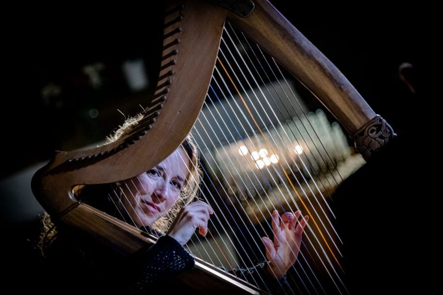 Performance di arpa celtica a cura di Marta Celli, in occasione dell’inaugurazione della mostra Paper Wings: Metamorphosis.