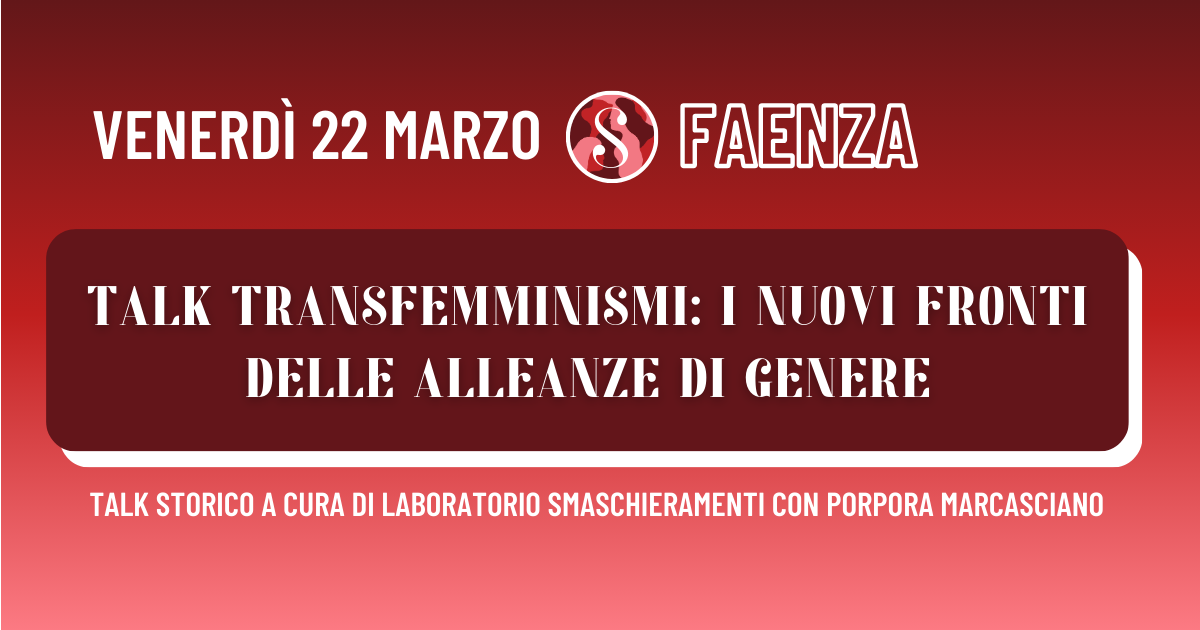 “Talk transfemminismi: i nuovi fronti delle alleanze di genere”Talk a cura di Laboratorio Smaschieramenti con Porpora Marcasciano