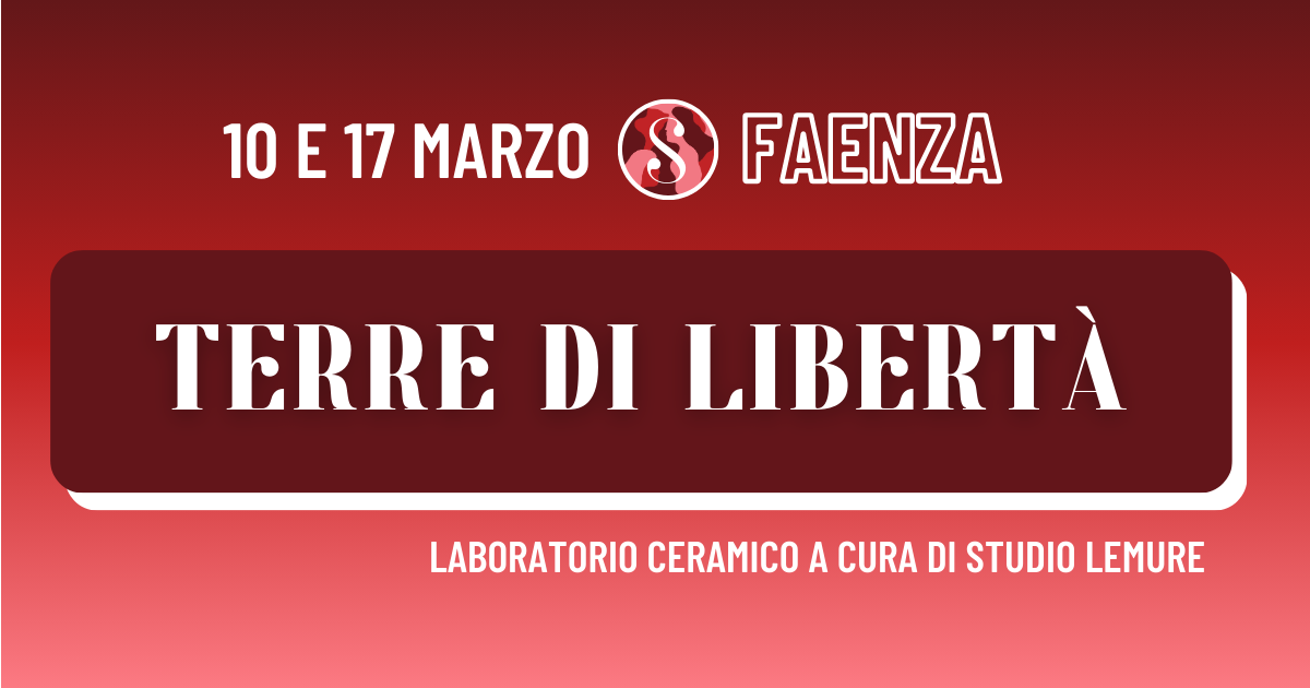 Lo Studio Lemure presenta il laboratorio “Terre di Libertà” dedicato alla creazione di un’installazione ceramica collettiva in celebrazione delle conquiste femminili. Valentina Angelini e Paola Nuovo Gómez guideranno la riflessione sulle figure femminili rivoluzionarie e sulle sfide contemporanee. L’uso di simboli, colori, forme e testi saranno gli strumenti per creare opere personali che riflettono le rivoluzioni femminili. L’obiettivo è sviluppare un’opera collettiva in mostra presso Palazzo Podestà dal 21 al 24 marzo.